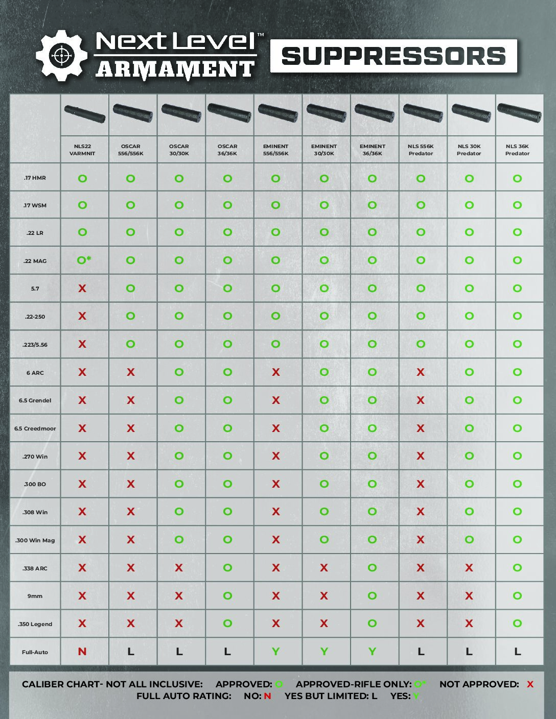 Suppressor Compatibility Charts